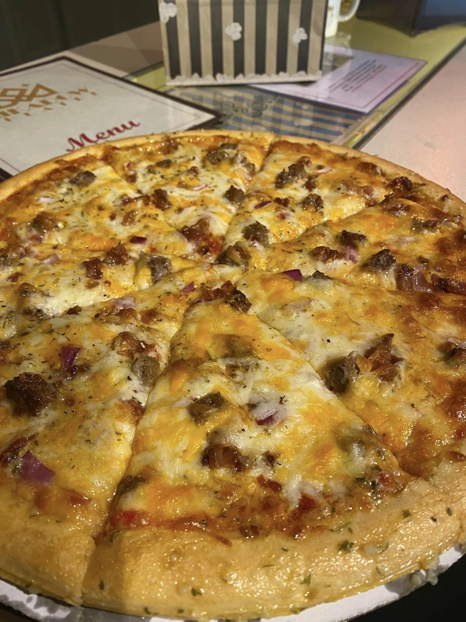 Pizza, concessions, and drinks are available during movie screenings — no lines, no rushing, no missing the good parts.